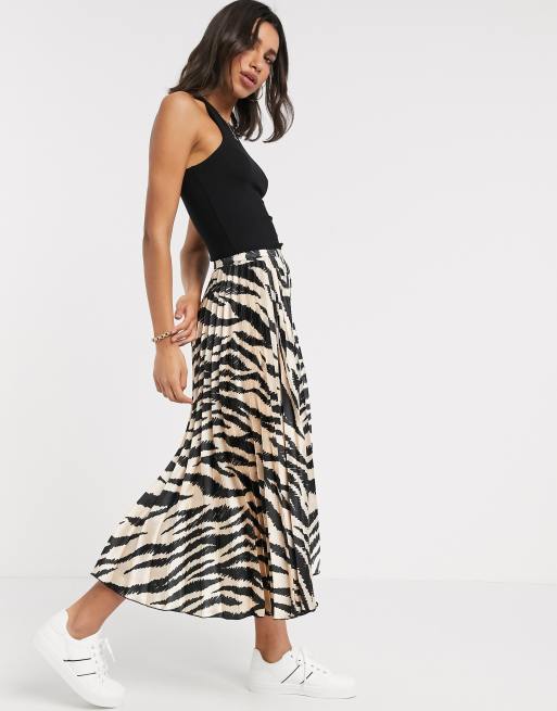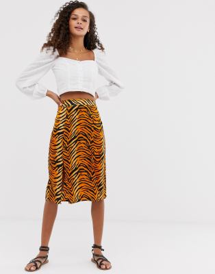 ASOS DESIGN satin pleated midi skirt in tiger print