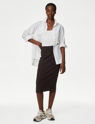 White ribbed midi clearance skirt, OTHER STORIES Ribbed Midi Pencil Skirt in White Endource clearance