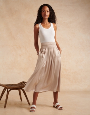 Smocked waist midi clearance skirt