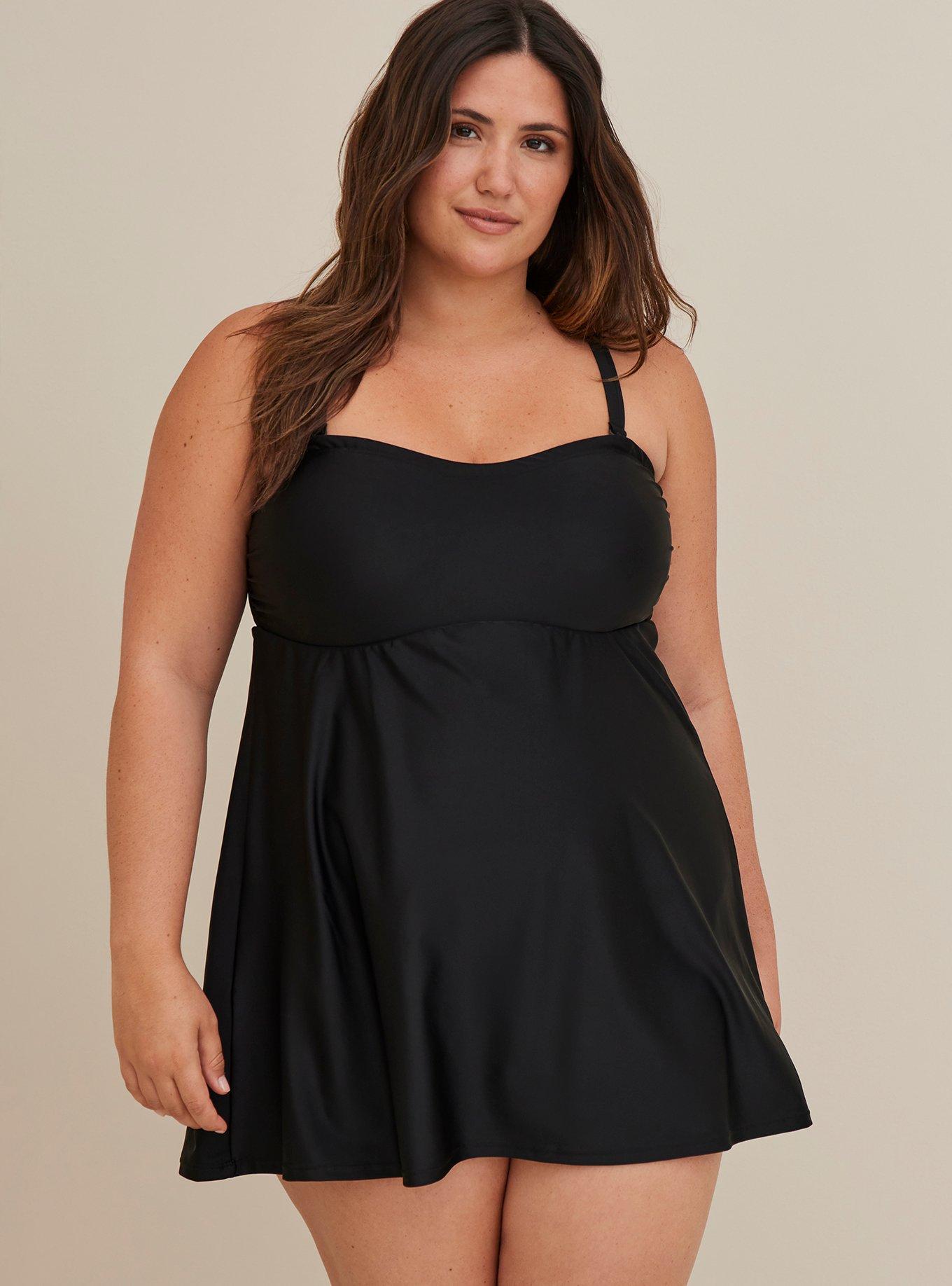 Plus size strapless clearance swimdress, Plus Size Wireless Mid Strapless Swim Dress With Brief Torrid clearance