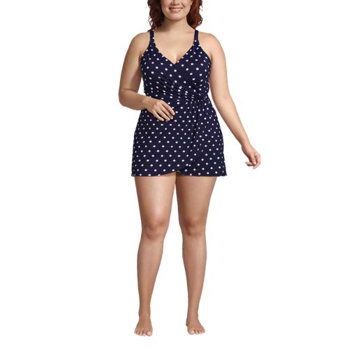 Lands end plus clearance size swim dress, Women s Chlorine Resistant Tulip Wrap Swim Dress One Piece clearance