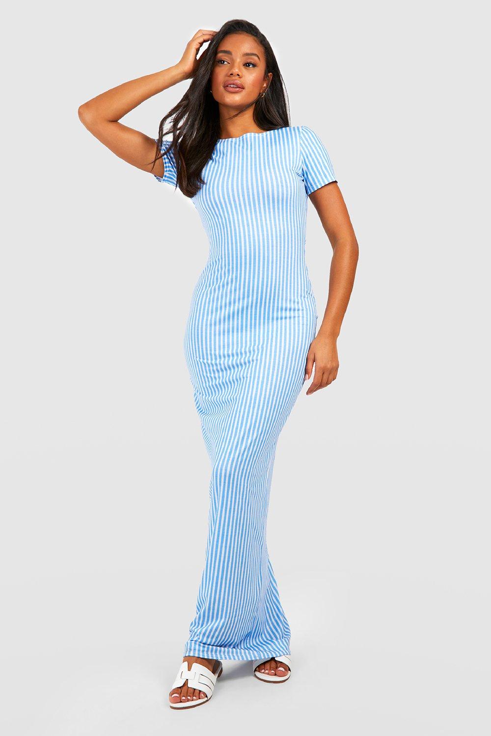 Short sleeve striped clearance maxi dress