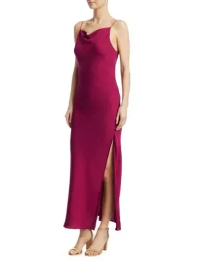 Draped Sleeveless Silk Maxi Slip Dress In Electric Pink
