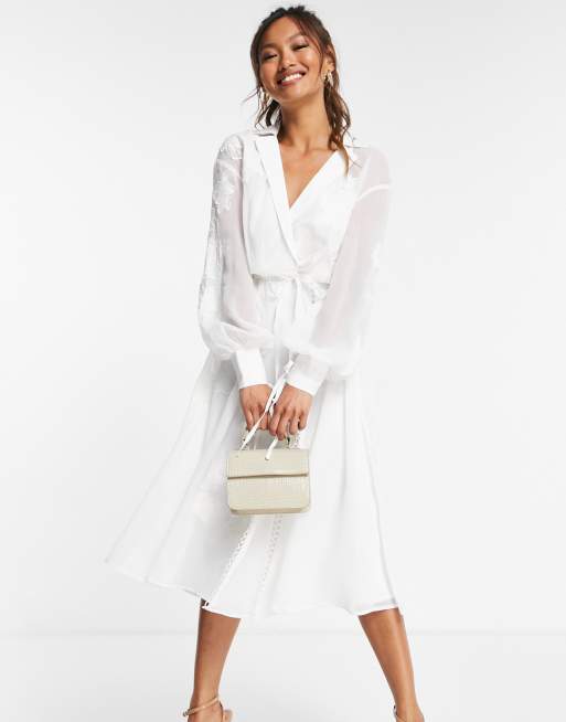 White embroidered wrap clearance dress, Coast Angel Sleeve Embroidered Maxi Dress in White Lyst UK clearance