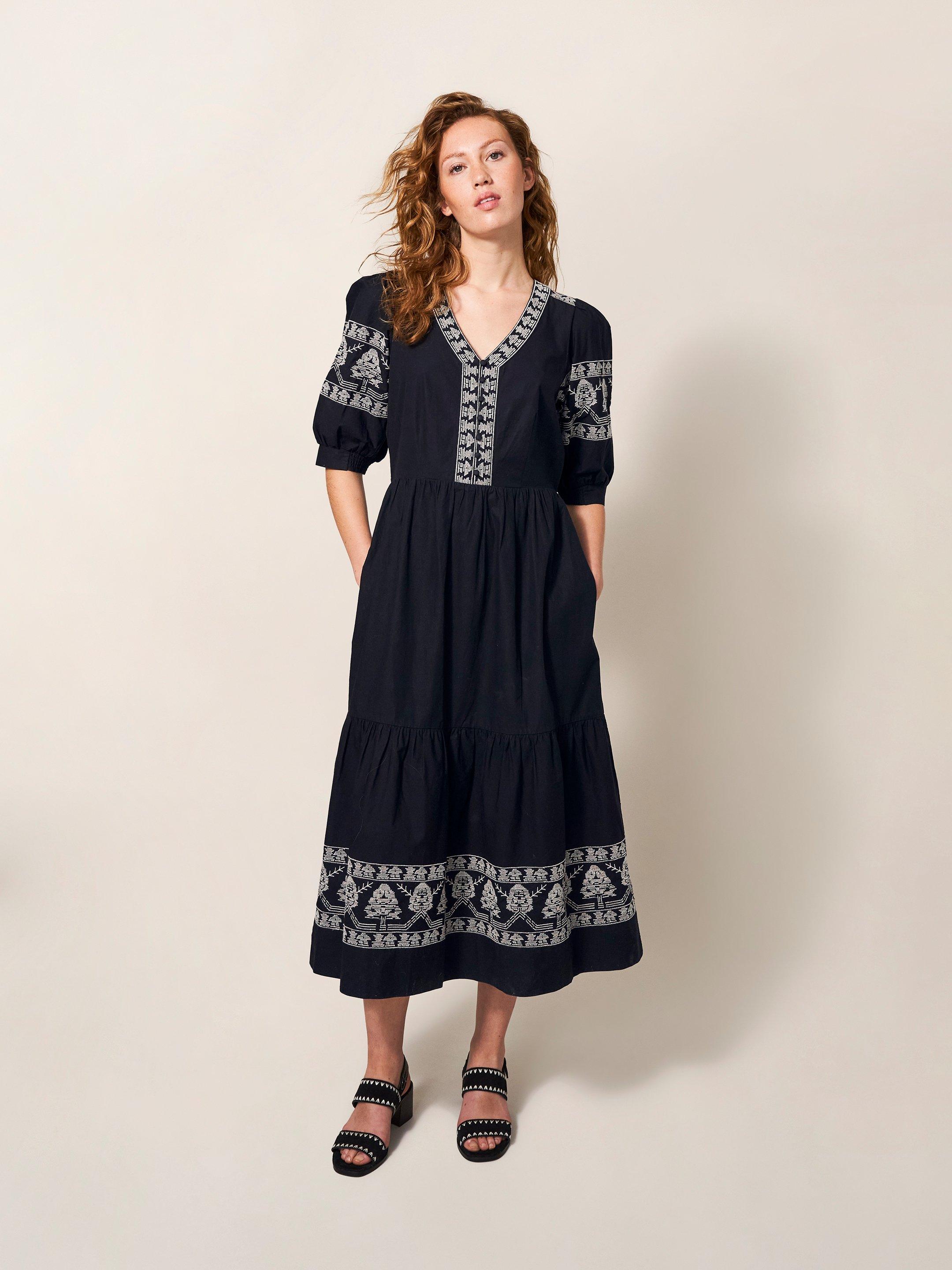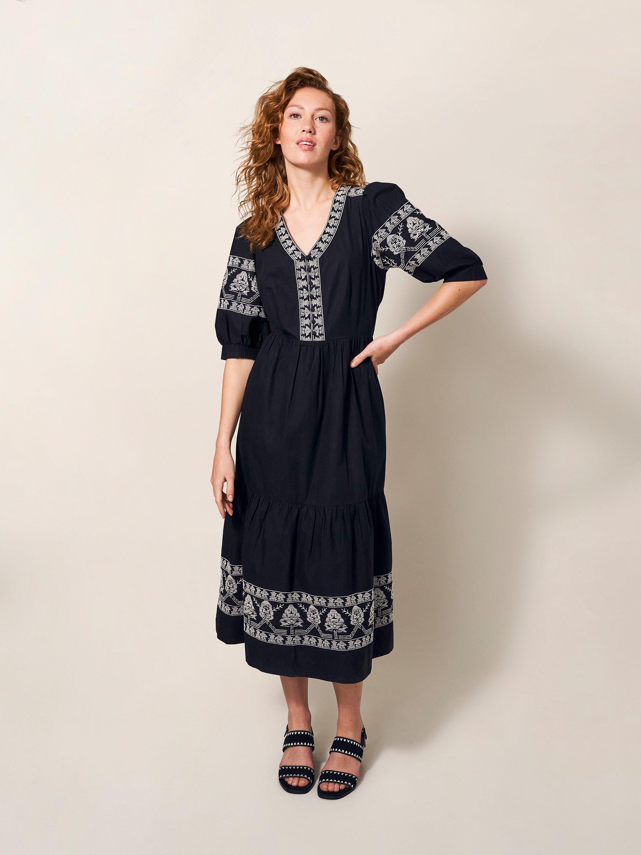 Dulcie Embroidered Midi Dress in BLACK MULTI White Stuff