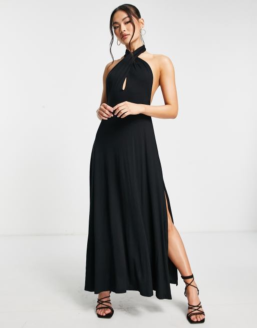 Trendyol halterneck maxi dress with leg split in black ASOS