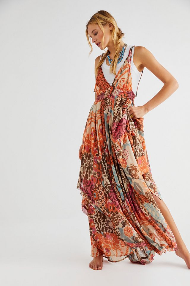 Free People Women s Let s Smock About It Maxi Dress Black Combo