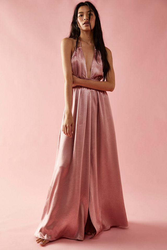 Free People Look Into the Sun Maxi Dress Halter Solid Smocked