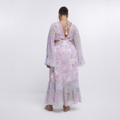 Free people carmen tie back clearance maxi dress, Plus purple paisley print maxi dress River Island clearance