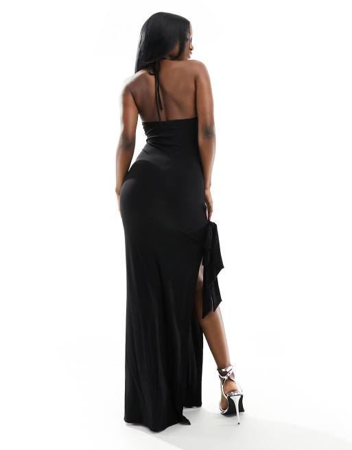 ASOS DESIGN halter maxi dress with high split tie side in black