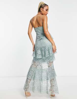Tiered lace maxi clearance dress