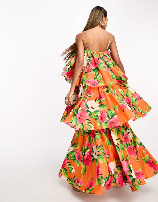 Forever unique tiered clearance maxi dress, Forever Unique tiered midaxi dress in orange floral print clearance