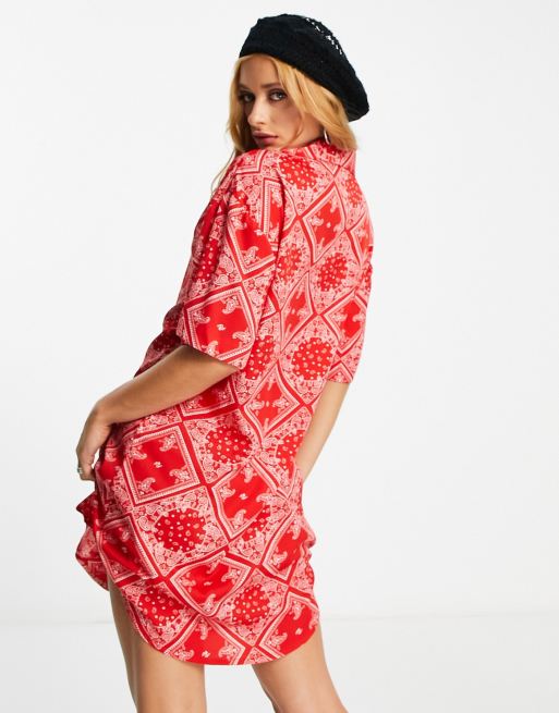Violet Romance shirt dress in red bandana print