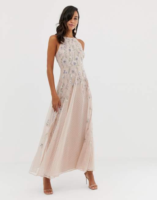 Asos design maxi dress with clearance pinny bodice in embroidered dobby, ASOS DESIGN strappy midi dress in delicate floral embellishment clearance