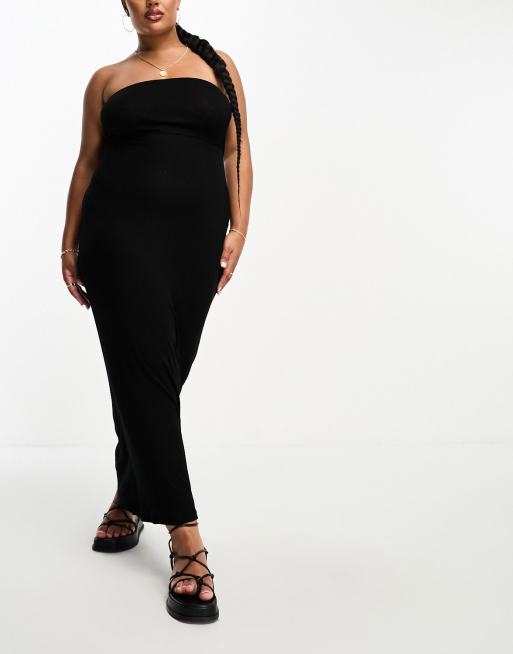 ASOS DESIGN Curve rib bandeau maxi beach dress in black