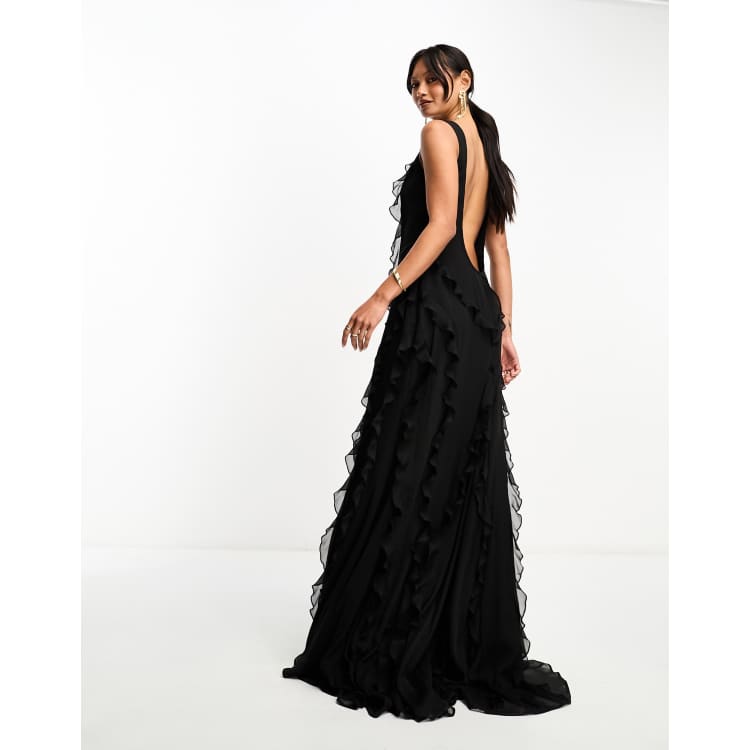 ASOS DESIGN ruffle maxi dress with scoop back in black