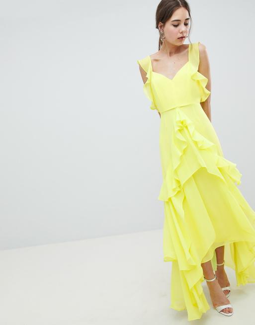 Asos design ruffle clearance maxi dress, ASOS DESIGN satin bias ruffle maxi dress in forest green clearance