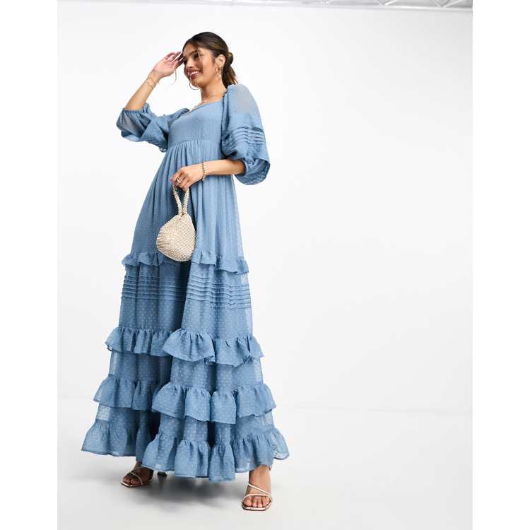 ASOS DESIGN pintuck detail ruffle hem maxi dress in dusky blue