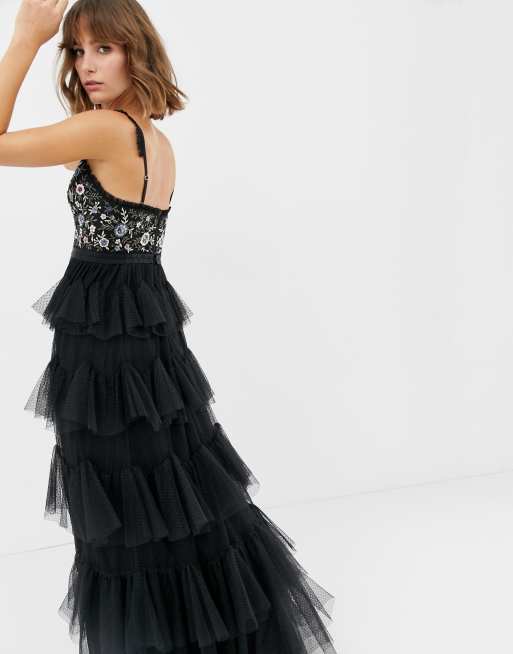 Needle and thread clearance black tulle dress, True Decadence Eliza Plunge Neck Layer Tulle Maxi Dress Black at clearance