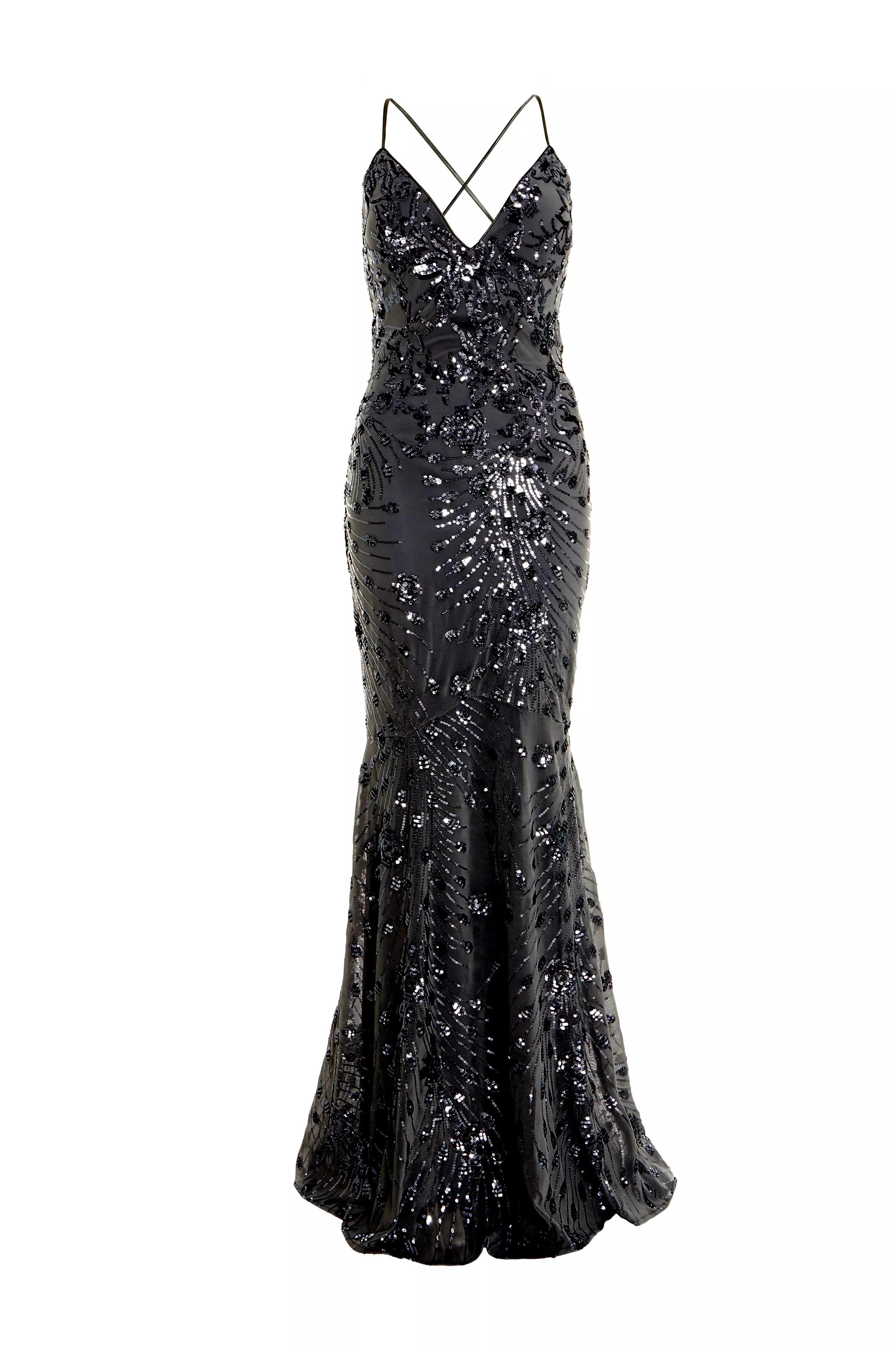Quiz black sequin clearance fishtail maxi dress, Arabella Black Luxe Tribal Vip Sequin Plunge Fishtail Dress Nazz clearance