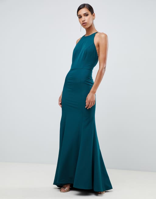 Jarlo fishtail maxi dress clearance with strappy back in green, Jarlo ASOS fishtail maxi dress prom with strappy clearance