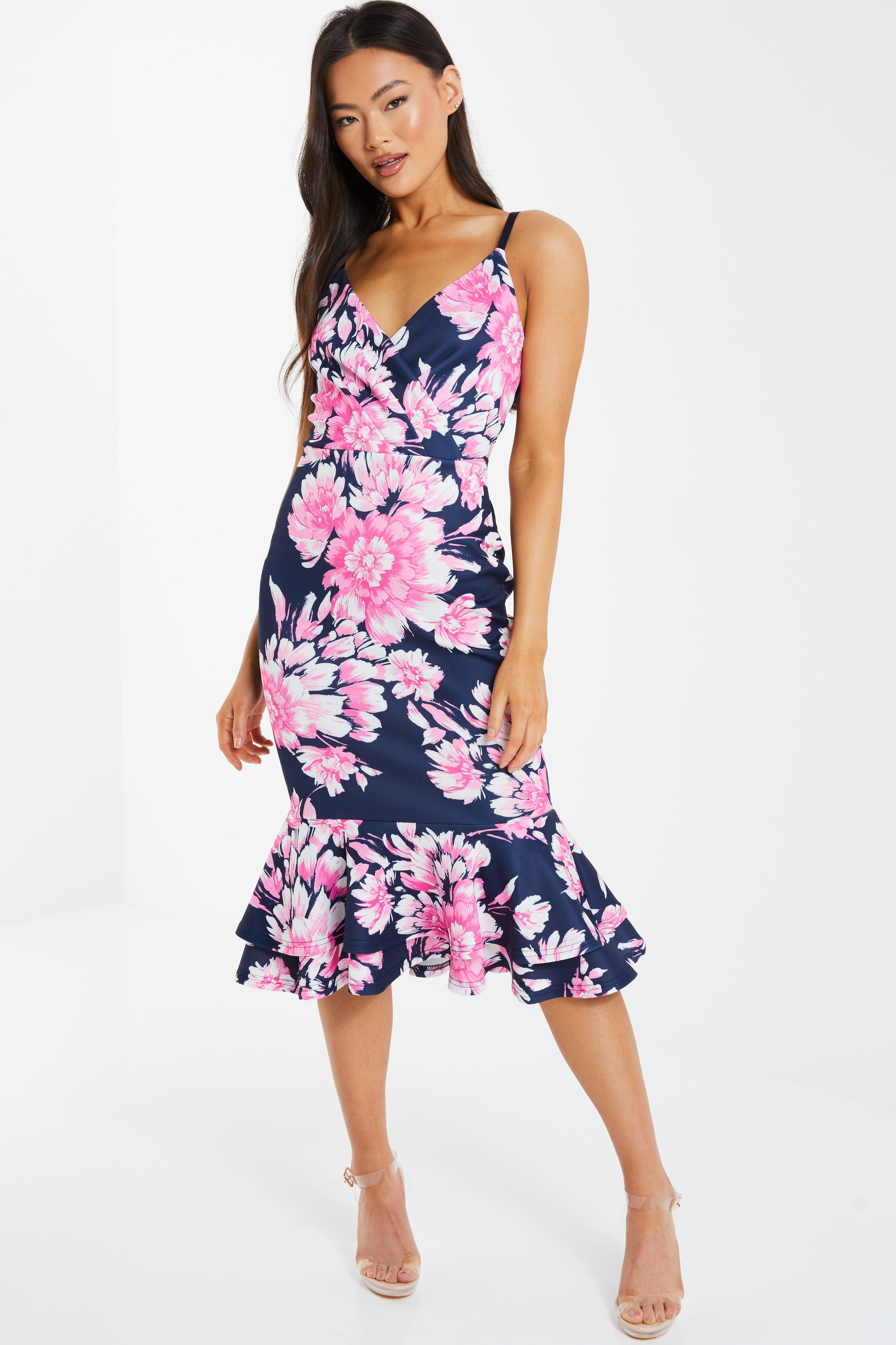 Quiz floral fishtail clearance dress