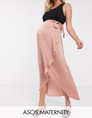 ASOS DESIGN Maternity satin wrap midi skirt in pink