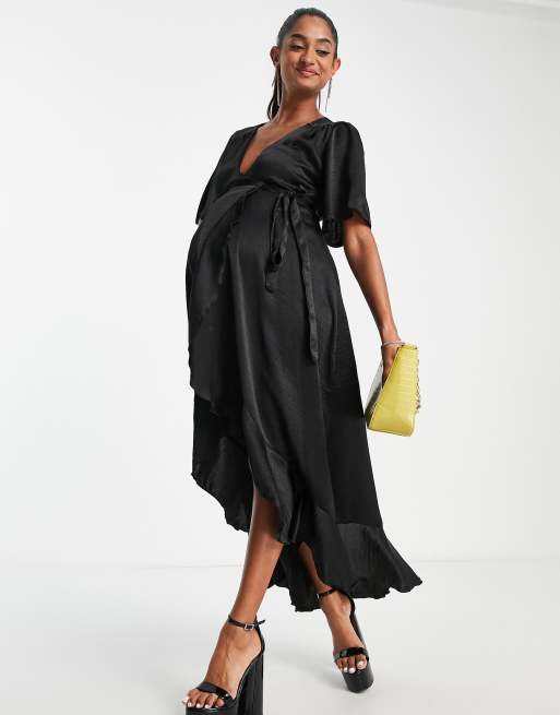 Flounce London Maternity wrap front midi dress with flutter