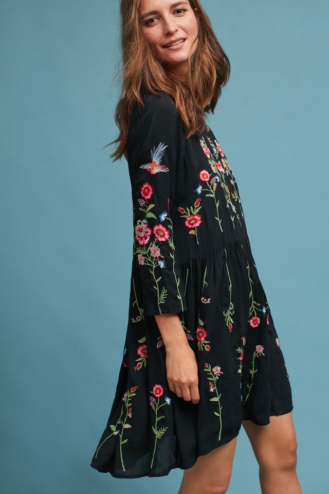 Anthropologie black embroidered clearance dress, Anthropologie Dasha Smocked Midi Dress S NEW NWT black floral clearance
