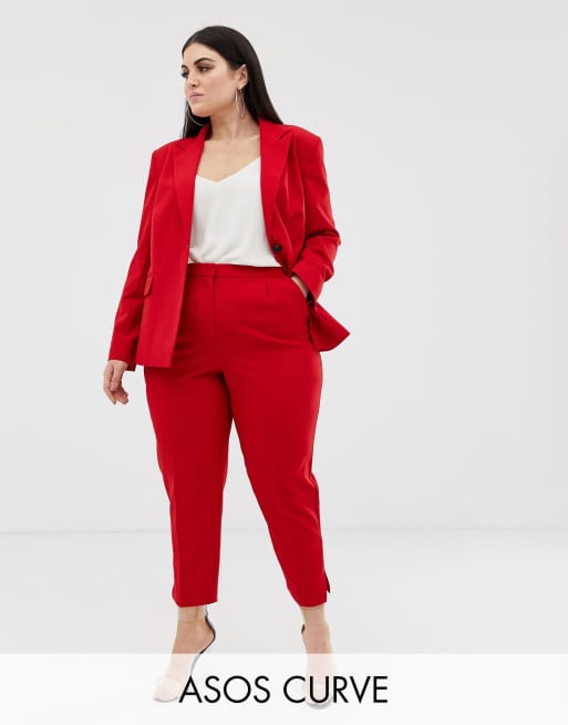 Tahari Plus Size Star collar One button Pantsuit in Red Lyst