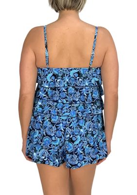 Fit 4 U Plus Size Hips 3 Tiered V Hem Swim Romper belk