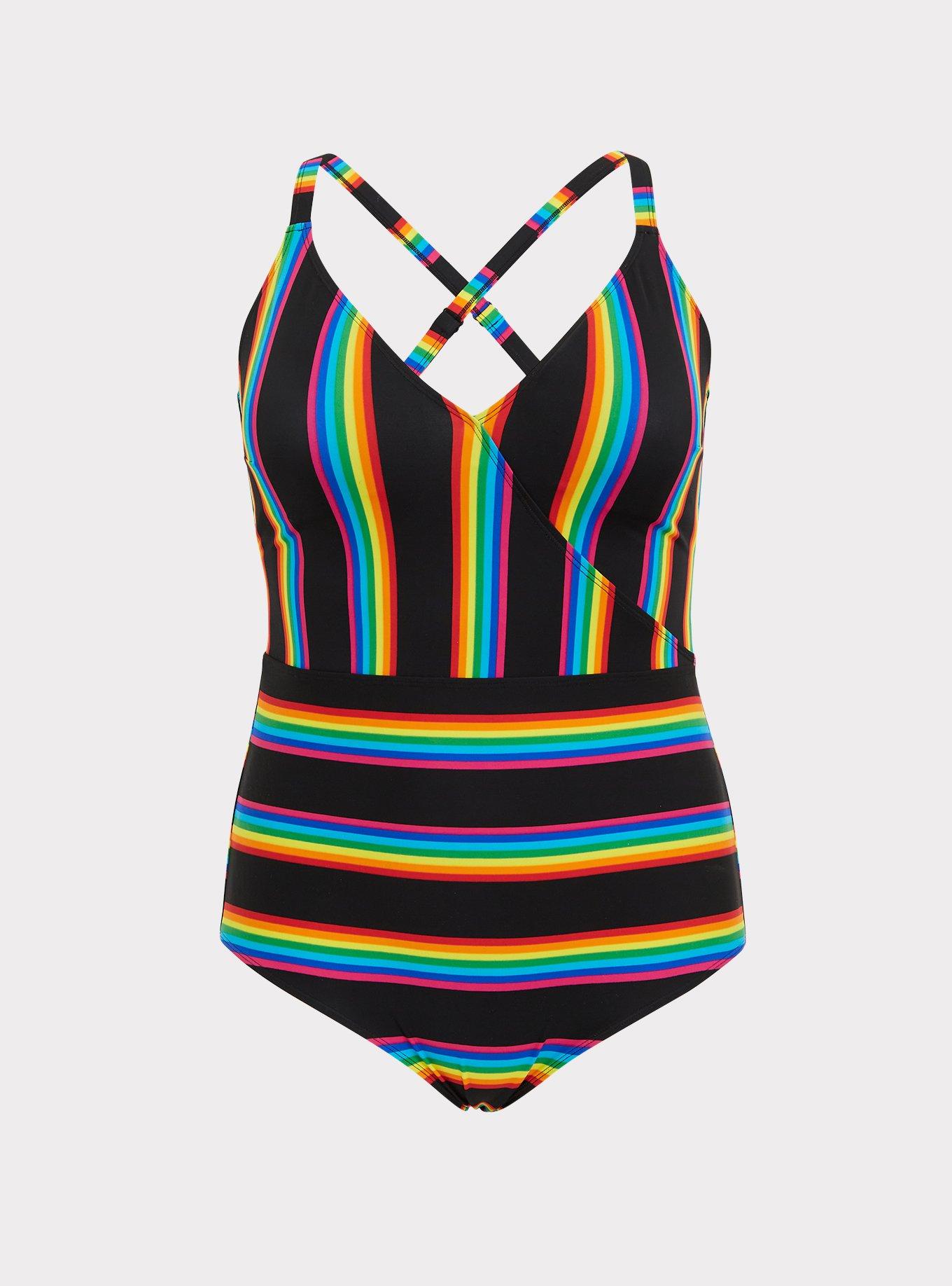 Plus Size Black Rainbow Stripe Wireless One Piece Swimsuit Torrid