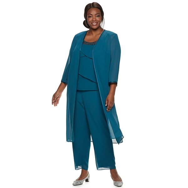 Plus Size Le Bos Tiered Top Duster Pants Set
