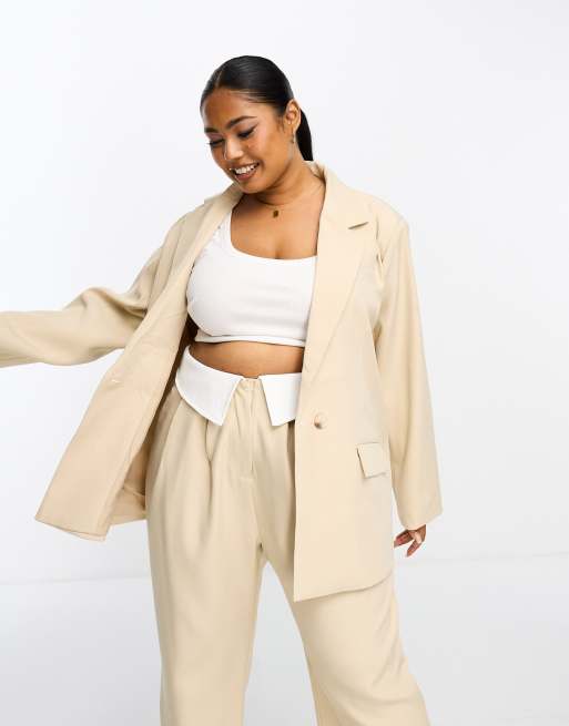 4th Reckless Plus exclusive blazer with button back detail co ord in cream