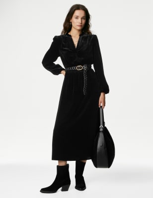 Black velvet knee clearance length dress, Buy Women s Knee Length Velvet Dresses Online Next UK clearance