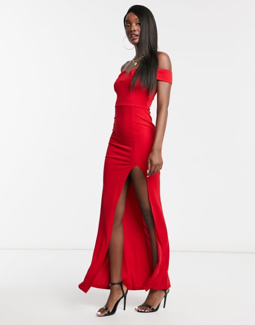 Belle of The Ball Red Bandeau Maxi Dress With Split Hem Club L