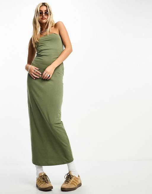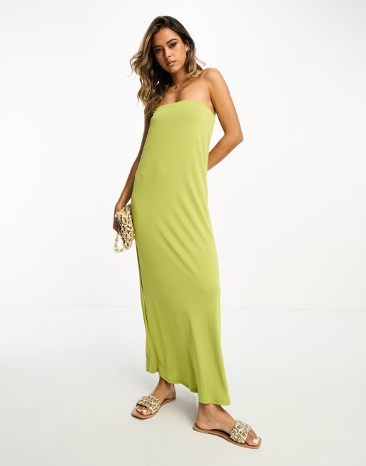 Khaki bandeau maxi clearance dress, ASOS DESIGN bandeau maxi dress in chartreuse ASOS clearance