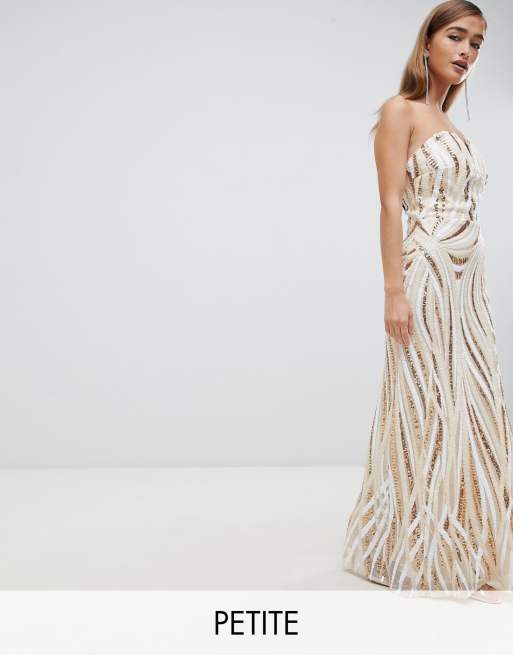 TFNC Petite patterned sequin bandeau maxi dress in gold ASOS