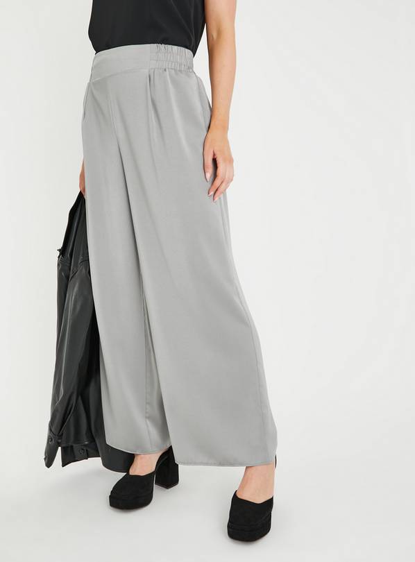 Buy Silver Satin Wide Leg Trousers 10S Trousers Tu