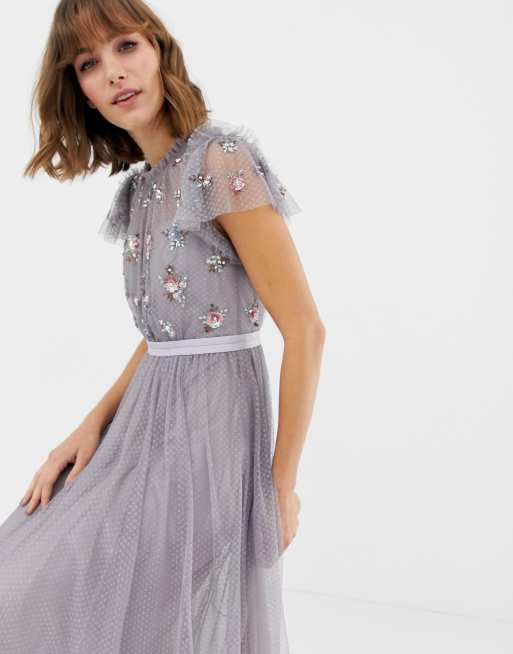 Needle & thread embellished bodice clearance tulle maxi gown in lavender, Needle and Thread Black V Mesh Tulle Embellished Maxi SIZE UK 8 eBay clearance