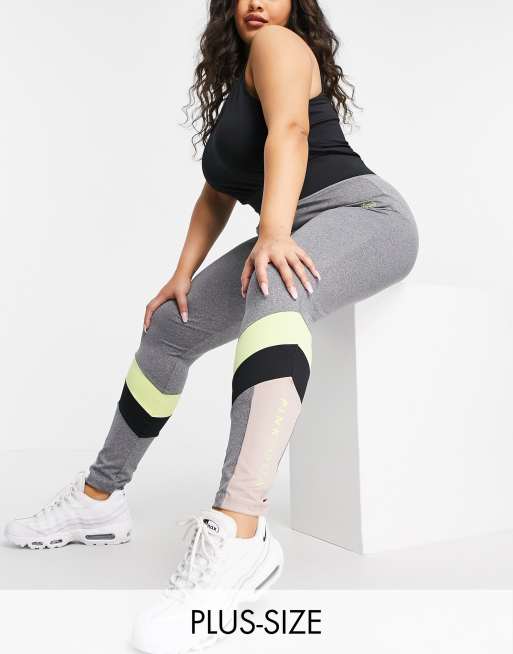 Pink Soda Sport Plus havana colour block leggings in grey and lime