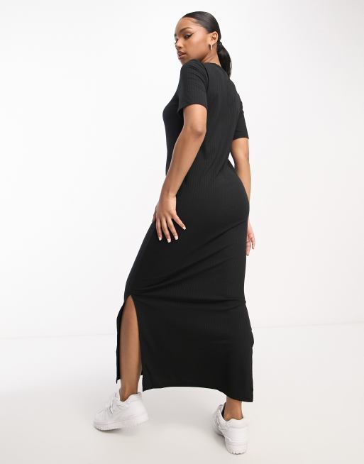 Cheap plus size clearance t shirt dress, Pieces ribbed maxi t shirt dress in black clearance