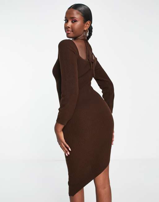 Fashionkilla knitted halterneck ruched sleeve midi dress in