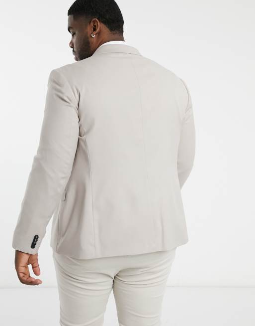 Topman Big Tall skinny single breasted suit jacket in stone ASOS