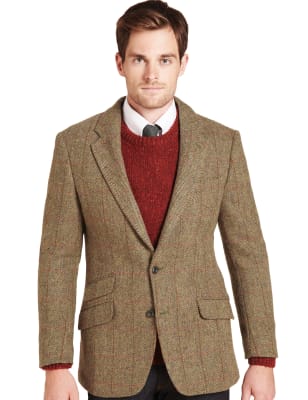 Big Tall Luxury Pure Wool 2 Button Harris Tweed Checked Jacket