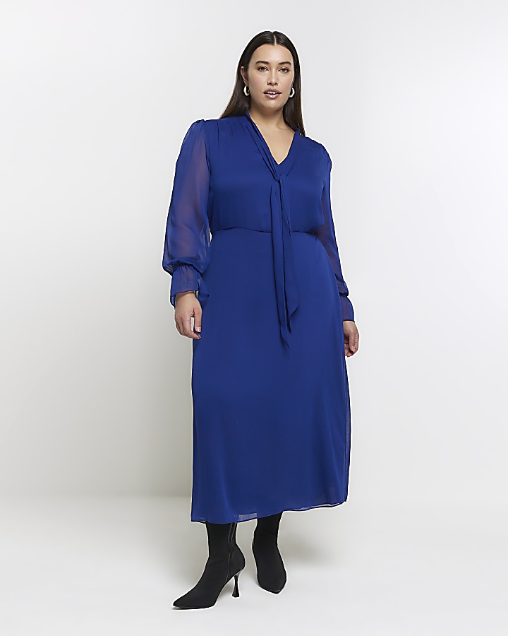 River Island Womens Blue Pleated Shift Maxi Dress ShopStyle