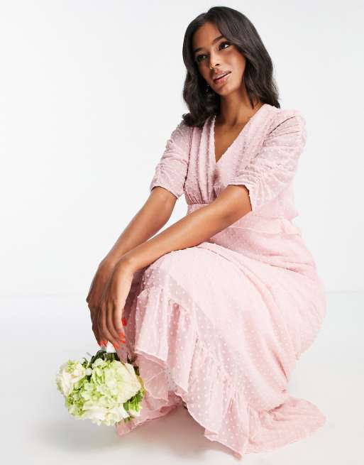Light pink lace clearance maxi dress, Blume Bridal chiffon maxi dress with texture in light pink ASOS clearance
