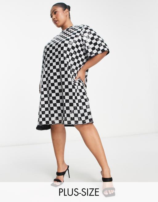 Vero Moda Curve checkerboard sequin mini dress in mono