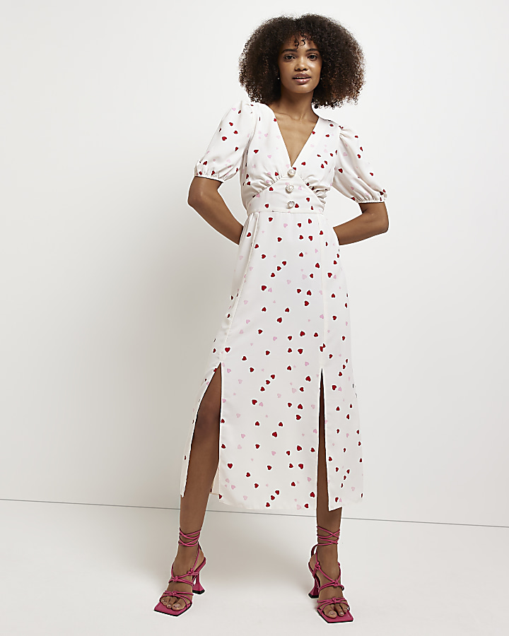 River island heart clearance print dress, Frill Detail Heart Print Dress clearance