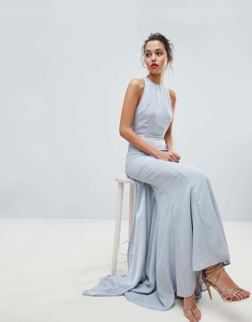 Monroe Open Back Maxi Dress With Pleat Train Detail